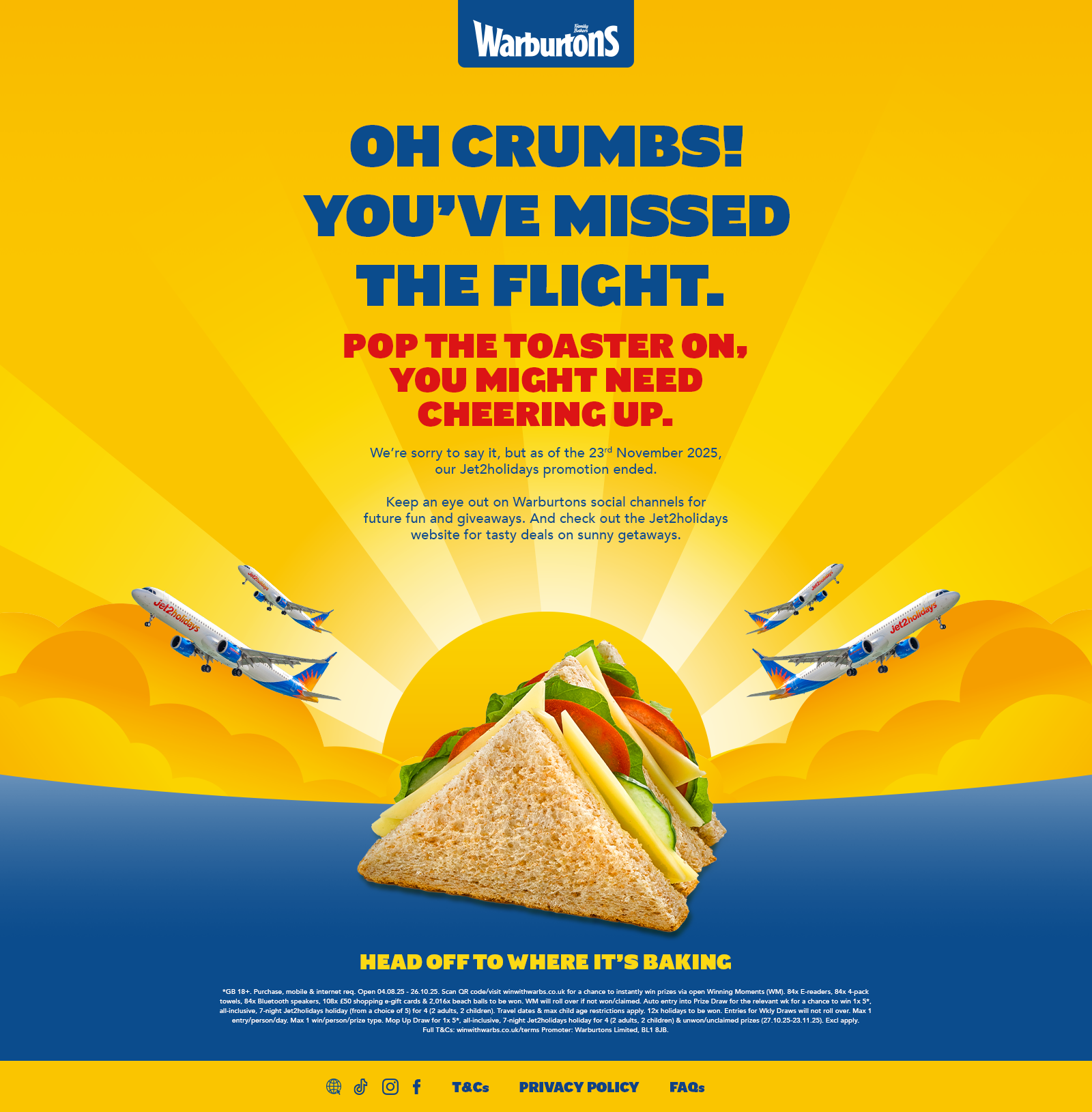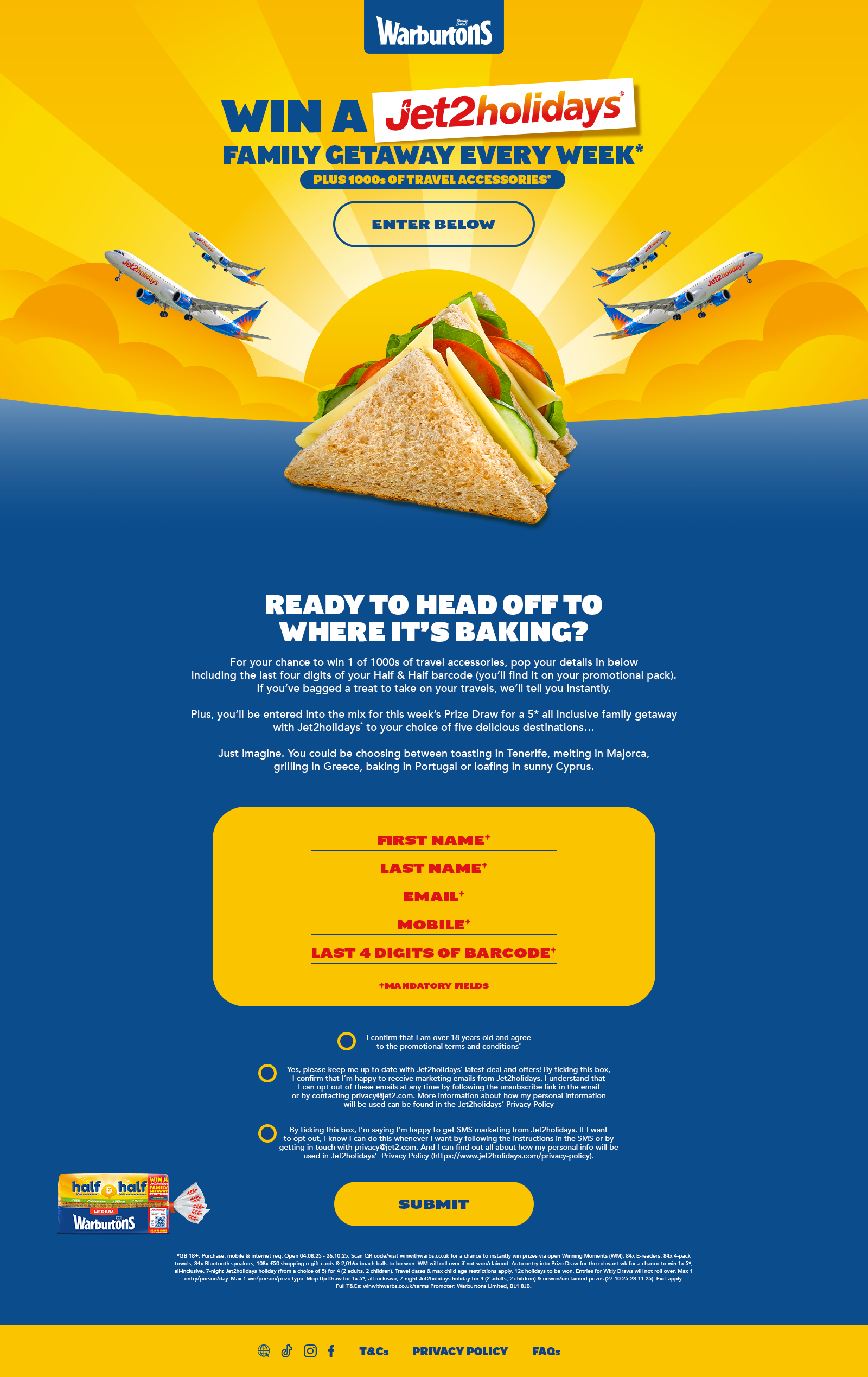 Warburtons has partnered with Jet2holidays to offer loaf lovers some cool prizes. We worked on the microsite for the competition for a simple barcode entry mechanism including pre and post live pages. WEBSITE This was a 360 campaign, with in store and on pack promotions.